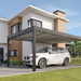 • Modern aluminium carport with a fixed, solid roof for all-weather vehicle protection
